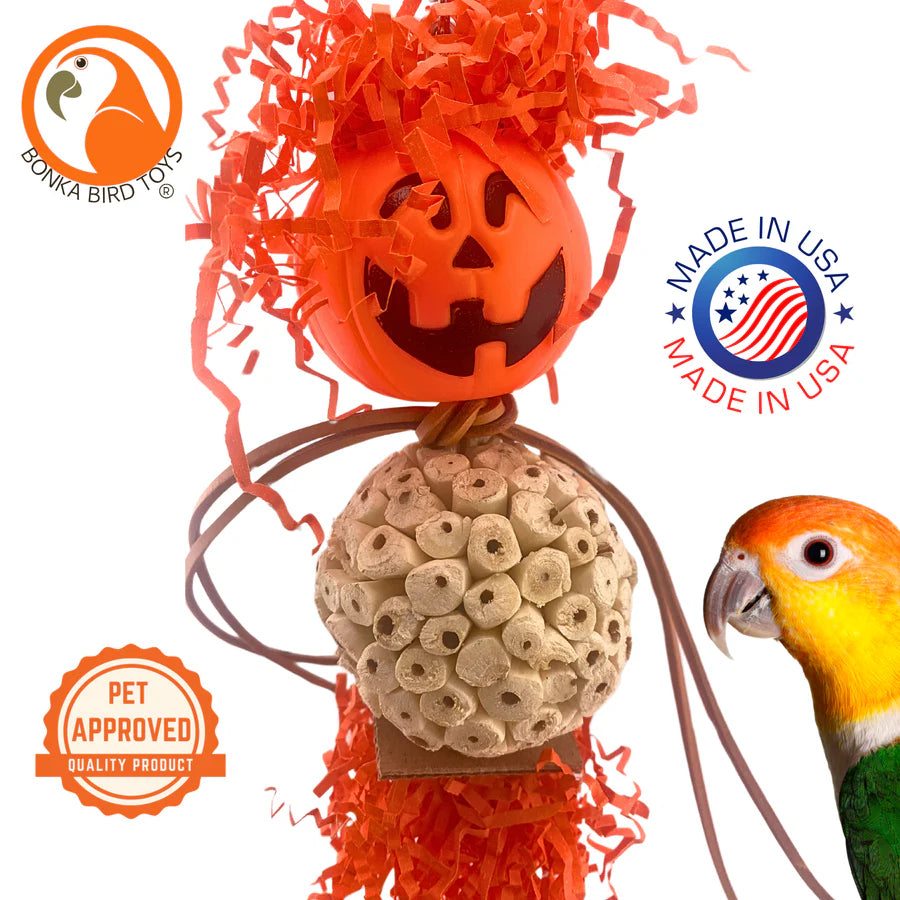 * Festive Pumpkin Bobblehead Decoration: A colored, pumpkin bobblehead adds seasonal charm, making this toy a standout in any bird's cage.