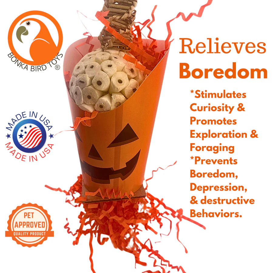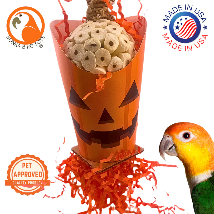 * Festive Jack-o-Lantern Decoration: The colorful cardboard pumpkin adds a touch of Halloween spirit to your bird's environment.
