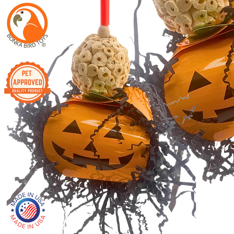 * Festive Pumpkin Decoration: A colored, cardboard pumpkin adds seasonal charm, making this toy a standout in any bird's cage.