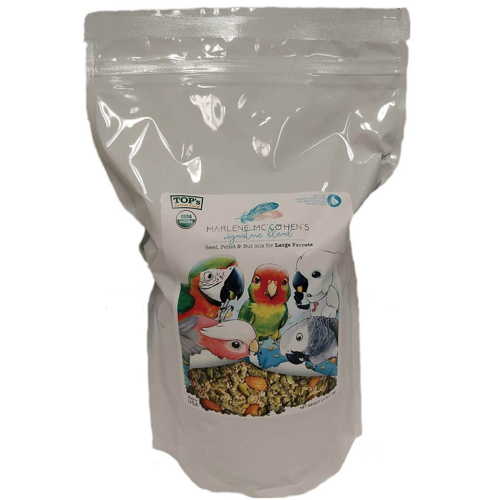 "My passion for birds began when I was 7 years old with my first bird, a Cockatiel named Doolie. Since then, I have dedicated my life to loving, rescuing and caring for parrots. That’s why I am excited to work with TOP’s Parrot Food to bring you Marlene Mc’Cohen’s Signature Blend, a USDA Organic Certified mix of non GMO ingredients to supply your companion with the nutrients they need to live a happier and healthier life. Remember to also feed your birds fruits and vegetables daily.