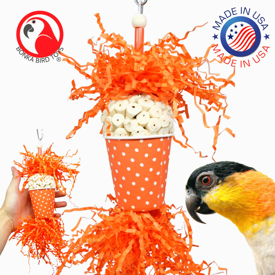 1. Colorful and Exciting: The Spotty Sola is visually attractive, featuring bright and colorful components. The colored shreddy paper and cup are designed to catch your bird's attention and encourage playtime.